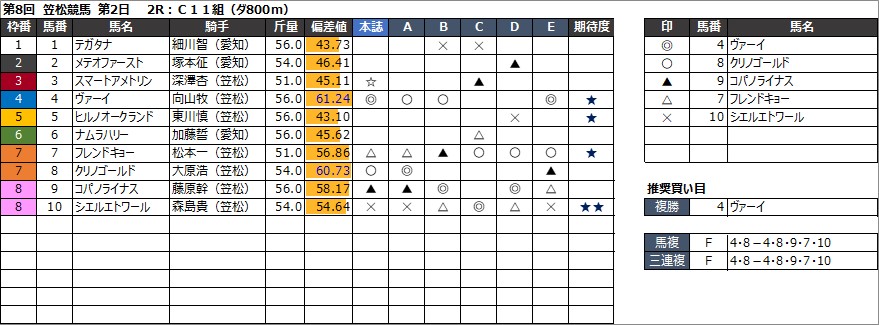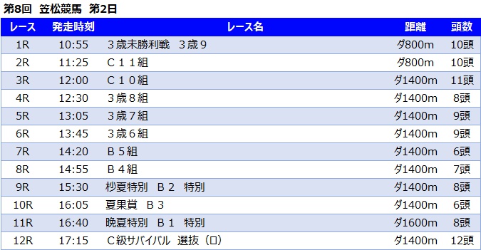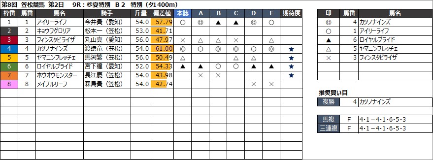 笠松競馬予想 8月31日(木) 晩夏特別 他