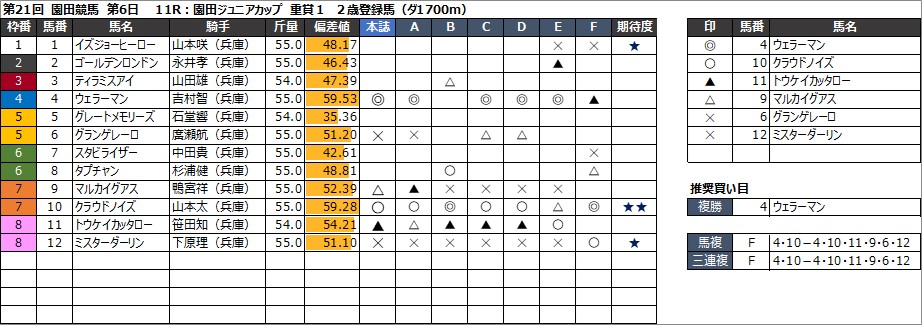 園田競馬予想 12月31日(日) 園田ジュニアカップ 他