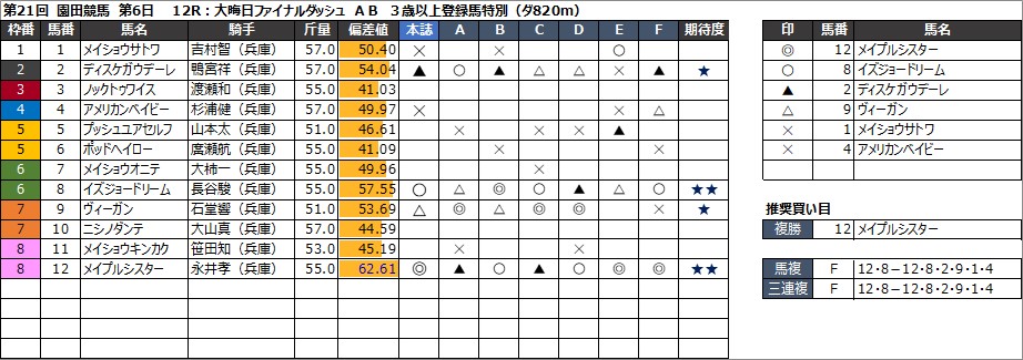 12R:大晦日ファイナルダッシュ AB 3歳以上登録馬特別(ダ820m)