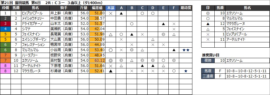 2023年12月31日(日) 園田競馬の全レース予想です。