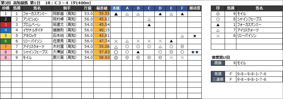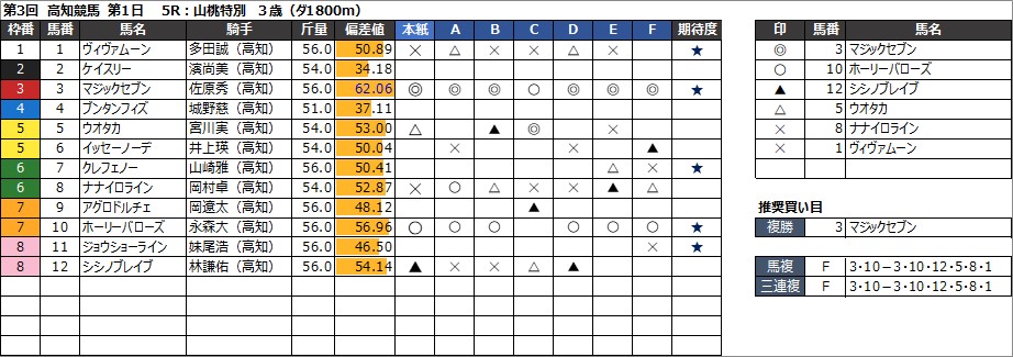 2024年5月18日(土) 高知競馬の全レース予想です。