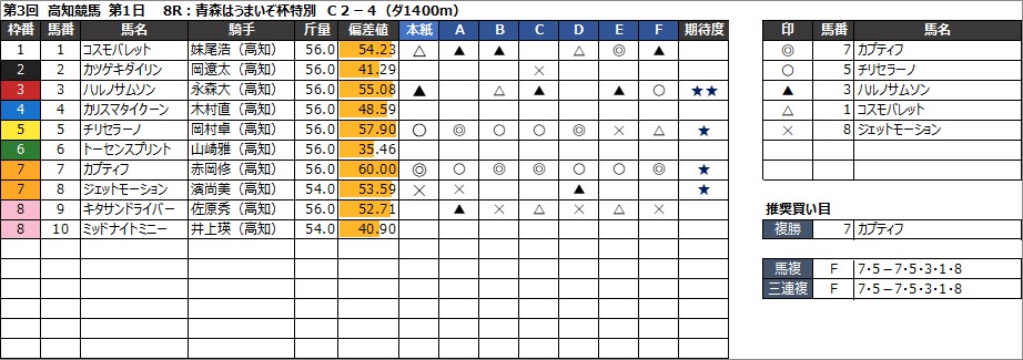 8R:青森はうまいぞ杯特別 C2-4(ダ1400m)