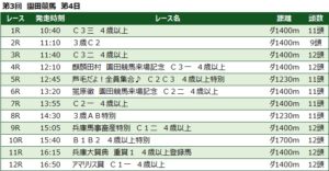 2024年5月1日(水) 門別競馬の全レース予想です。 第2回 門別競馬は 5月1日(水)~2日(木)・8日(水)~9日(木)の開催です。期間中、以下の重賞がおこなわれます。・5月2日(木) 第48回 北斗盃〔H3〕・5 […]