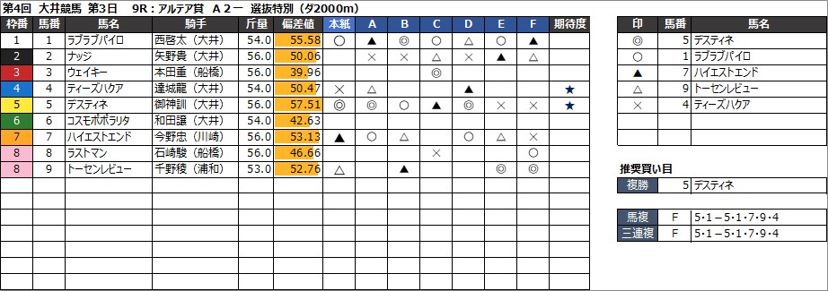 2024年6月5日(水) 大井競馬の全レース予想です。