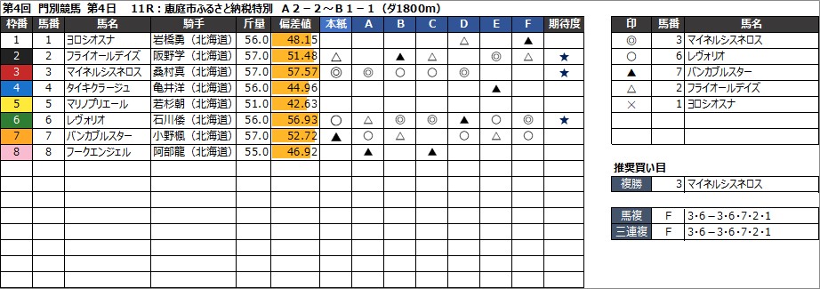 11R:恵庭市ふるさと納税特別 A2-2~B1-1(ダ1800m)