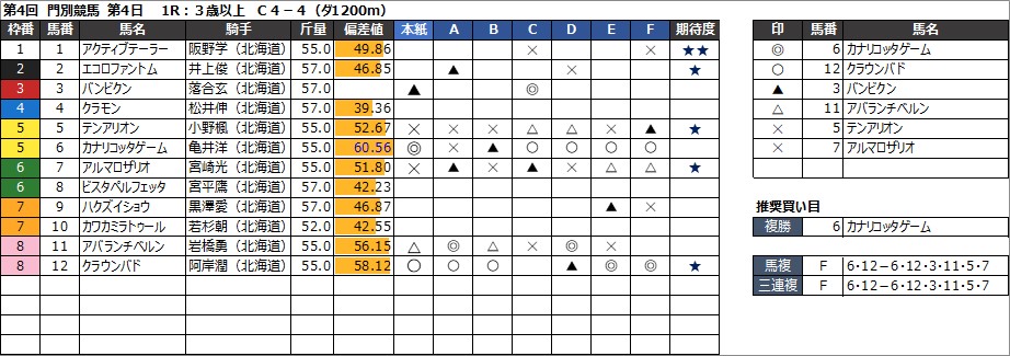2024年6月5日(水) 門別競馬の全レース予想です。