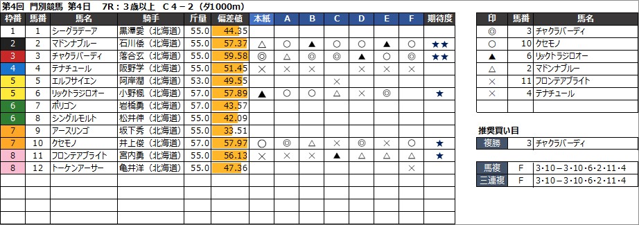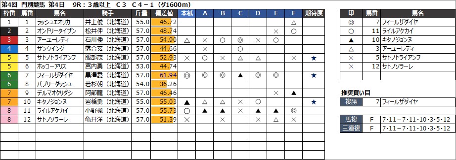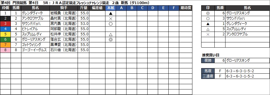 門別競馬予想 6月5日(水) ルーラーシップ・プレミアム 他