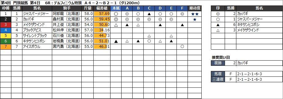 6R:デルフィニウム特別 A4-2~B2-1(ダ1200m)