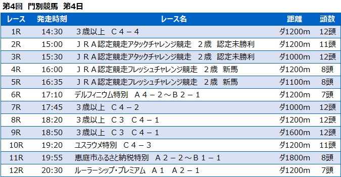 4R:JRA認定競走フレッシュチャレンジ競走 2歳 新馬(ダ1200m)