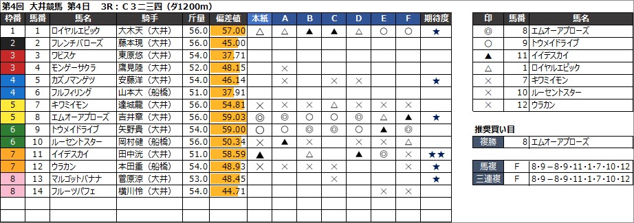 2024年6月6日(木) 大井競馬の全レース予想です。