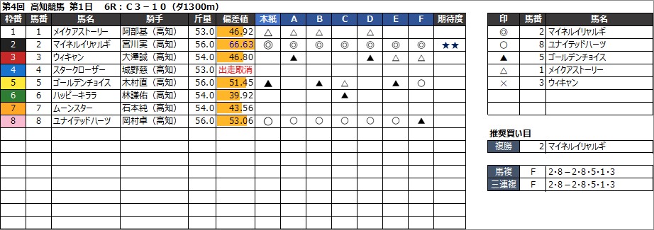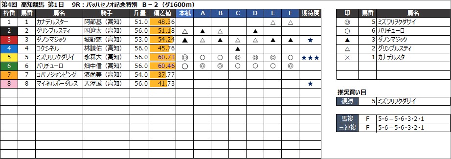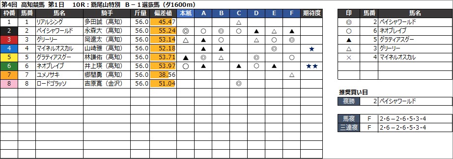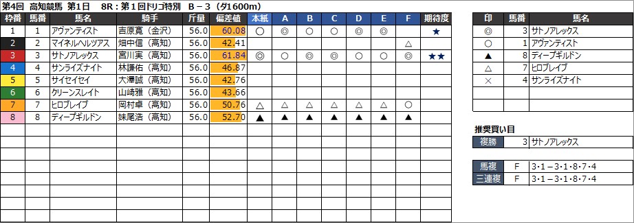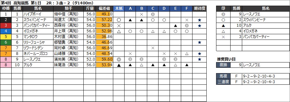 高知競馬予想 6月8日(土) 瀬戸特別 他