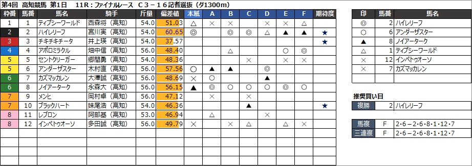 11R:ファイナルレース C3-16記者選抜(ダ1300m)