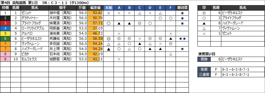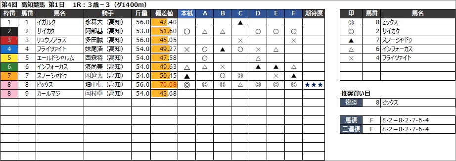 2024年6月8日(土) 高知競馬の全レース予想です。
