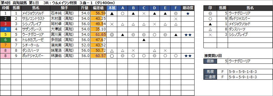 3R:ウルメイワシ特別 3歳-1(ダ1400m)