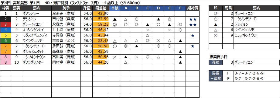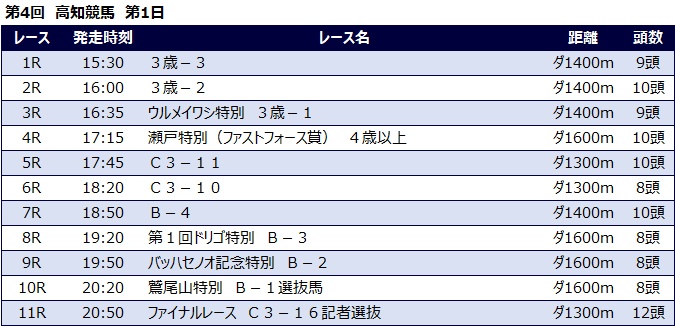 4R:瀬戸特別(ファストフォース賞) 4歳以上(ダ1600m)