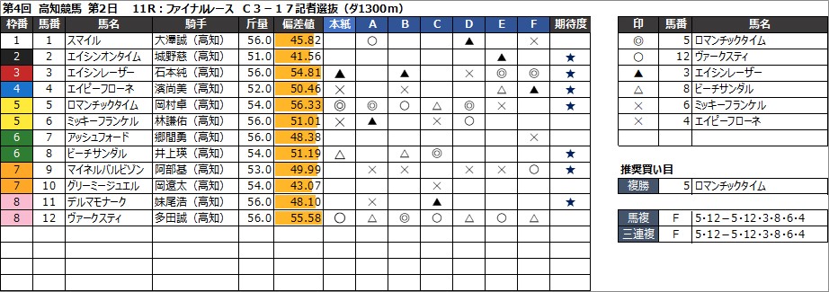 11R:ファイナルレース C3-17記者選抜(ダ1300m)