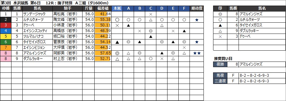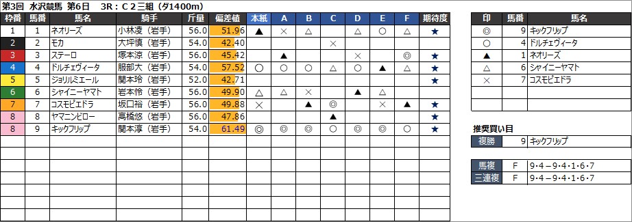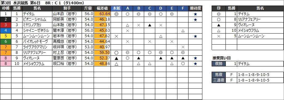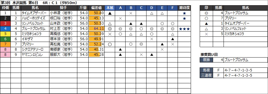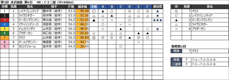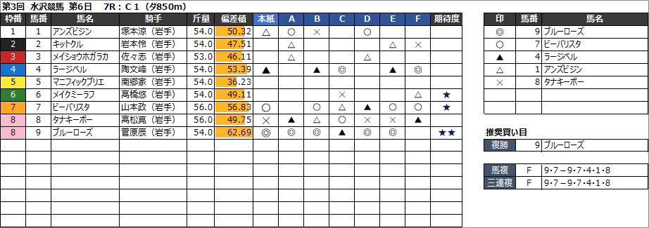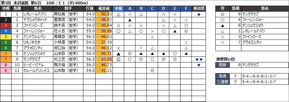 水沢競馬予想 6月11日(火) 撫子特別 他