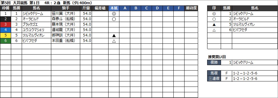 2024年6月24日(月) 大井競馬の全レース予想です。