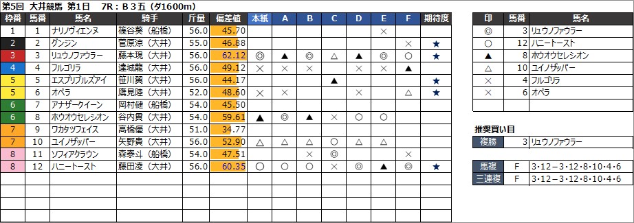 大井競馬予想 6月24日(月) 淡路坂賞 他